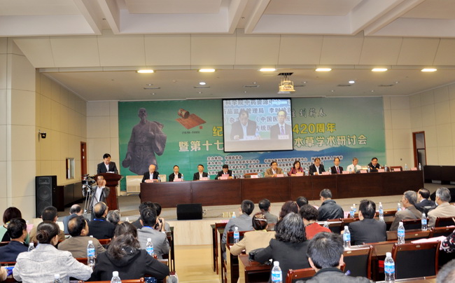 25日,會議開幕式由中國藥學(xué)會藥學(xué)史專業(yè)委員會副主任委員、廣東省藥學(xué)會藥學(xué)史專業(yè)委員會主任委員梅全喜主持,中國藥學(xué)會藥學(xué)史專業(yè)委員會主任委員郝近大致開幕詞,蘄春縣人民政府縣長趙少蓮和中國藥學(xué)會副秘書長陳兵教授講話,蘄春縣人大副主任王劍宣讀李時珍逝世420周年紀念文。開幕式上還放映了由健康衛(wèi)視攝制的《本草綱目》大型文獻紀錄片——從“艾”開始,并舉行了由梅全喜教授主編、中國中醫(yī)藥出版社出版的《艾葉的研究與應(yīng)用》新書首發(fā)式暨贈書儀式,梅全喜教授向蘄春縣李時珍中醫(yī)藥圖書館、蘄春縣李時珍紀念館及參會代表贈書。出席大會的中國藥學(xué)會副理事長、中國中醫(yī)科學(xué)院副院長黃璐琦教授、中國中醫(yī)科學(xué)院中國醫(yī)史文獻研究所萬芳研究員、安徽中醫(yī)藥大學(xué)副校長彭代銀教授,臺灣中國醫(yī)藥大學(xué)謝云忠教授,湖南中醫(yī)藥大學(xué)藥學(xué)院原院長李鐘文教授、南京中醫(yī)藥大學(xué)醫(yī)史文獻研究所副所長陳仁壽教授以及廣東省藥學(xué)會藥學(xué)史分會主委梅全喜教授、副主委趙中振教授、曹暉教授等做了精彩的學(xué)術(shù)報告。 26日上午全體代表參加了第23屆李時珍中藥材交易會開幕儀式,并參觀了李時珍醫(yī)藥集團、李時珍紀念館及李時珍陵園,向李時珍墓前敬獻花籃,追思醫(yī)圣的豐功偉績。