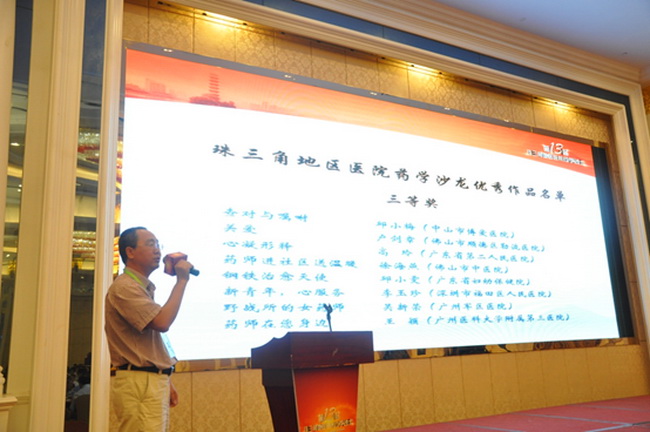 為豐富本屆沙龍活動內(nèi)容,發(fā)現(xiàn)、展示藥學(xué)工作以及藥師們的動人事跡和感人瞬間,充實(shí)業(yè)余生活,提高藥師攝影及審美水平,本屆沙龍還同時舉辦了“藥師的故事”主題攝影比賽,共征集作品53幅,評選出一等獎2名,二等獎5名,三等獎10名,由廣東省藥學(xué)會陳民喜副秘書長主持?jǐn)z影賽頒獎,并邀請了鄭志華秘書長、楊艷副總經(jīng)理和江蘇新晨醫(yī)藥有限公司高峰總監(jiān)分別為一、二、三等獎獲獎作者頒發(fā)證書。