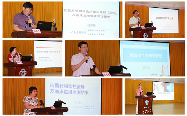 本次學(xué)術(shù)研討會主題為“抗菌藥物合理應(yīng)用與監(jiān)控”,會議邀請了廣州呼吸疾病研究所卓超教授、南方醫(yī)院孫樹梅教授、廣東藥科大學(xué)附屬第一醫(yī)院楊澤民教授、陳吉生教授等國內(nèi)知名藥事管理專家,就“中國細菌耐藥現(xiàn)狀與對策”、“耐藥背景下抗感染治療的再思考”、“2015版抗菌藥物臨床應(yīng)用指導(dǎo)原則與評價指標(biāo)”、“輸液安全與防范管理”等專題授課。另邀請多名資深臨床藥師作了“典型臨床藥學(xué)服務(wù)”案例分享。