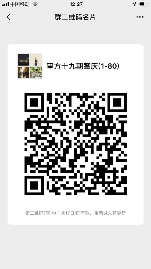 請(qǐng)學(xué)員按照錄取名單中的編號(hào)掃二維碼加入學(xué)員微信群,編號(hào):1-81號(hào)學(xué)員加入微信群“審方十九期肇慶(1-81)”,編號(hào)82-150號(hào)學(xué)員加入微信群“審方十九期云?。?2-150)”。學(xué)員入群后第一時(shí)間將群昵稱更改為“編號(hào)+姓名+醫(yī)院”,培訓(xùn)期間相關(guān)事宜統(tǒng)一在群中通知。
