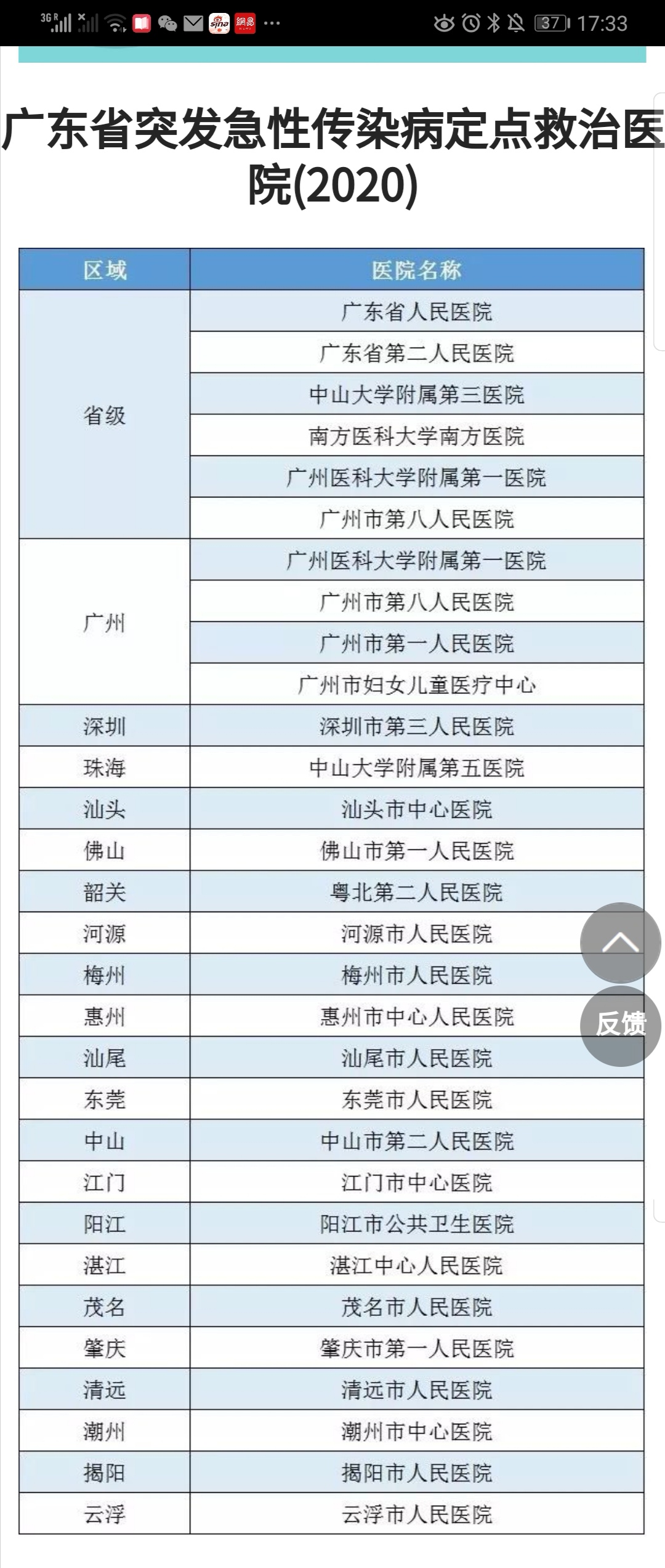 廣東省突發(fā)急性傳染病定點(diǎn)救治醫(yī)院(2020年)