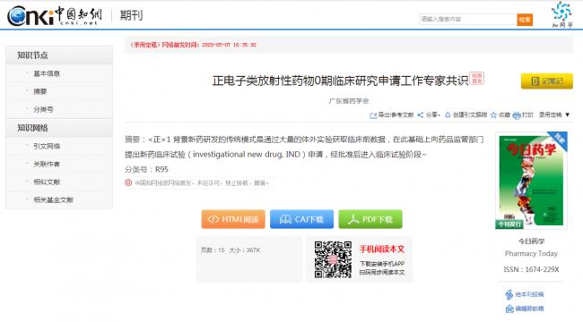 本共識(shí)已在中國(guó)知網(wǎng)優(yōu)先發(fā)表,引用格式:[1] 廣東省藥學(xué)會(huì).正電子類放射性藥物0期臨床研究申請(qǐng)工作專家共識(shí)[J/OL].今日藥學(xué):1-15[2020-05-08].http://kns.cnki.net/kcms/detail/44.1650.r.20200507.1514.002.html.