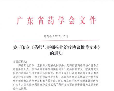 關(guān)于印發(fā)《藥師與醫(yī)師抗栓治療協(xié)議推薦文本》的通知