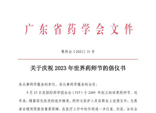 關(guān)于慶祝2023年世界藥師節(jié)的倡議書