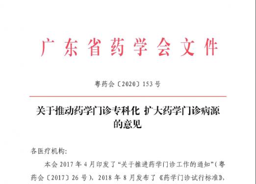 關(guān)于推動(dòng)藥學(xué)門診??苹?擴(kuò)大藥學(xué)門診病源的意見(jiàn)