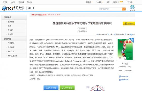 本共識已在中國知網(wǎng)優(yōu)先發(fā)表,引用格式為:[1]廣東省藥學(xué)會.加速康復(fù)外科圍手術(shù)期藥物治療管理醫(yī)藥專家共識[J/OL].今日藥學(xué)[2019-12-31].http://kns.cnki.net/kcms/detail/44.1650.R.20191231.1650.002.html各醫(yī)療機構(gòu):本會2015年提出設(shè)立外...發(fā)布時間:2019-12-31 17:22:39 | 瀏覽:4101 -