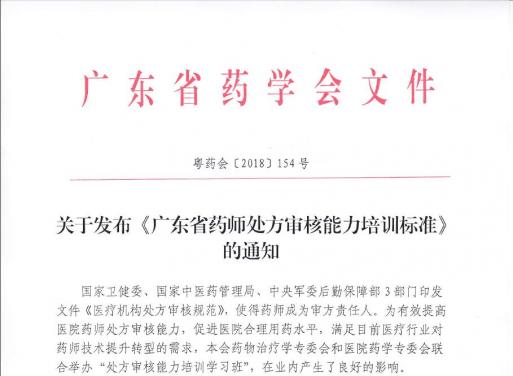 關于發(fā)布《廣東省藥師處方審核能力培訓標準》的通知