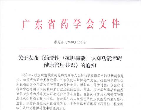 關(guān)于發(fā)布《藥源性(抗膽堿能)認知功能障礙健康管理共識》的通知